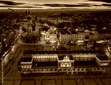 Rynek Główny w Krakowie o wschodzi słońca - widok z drona
