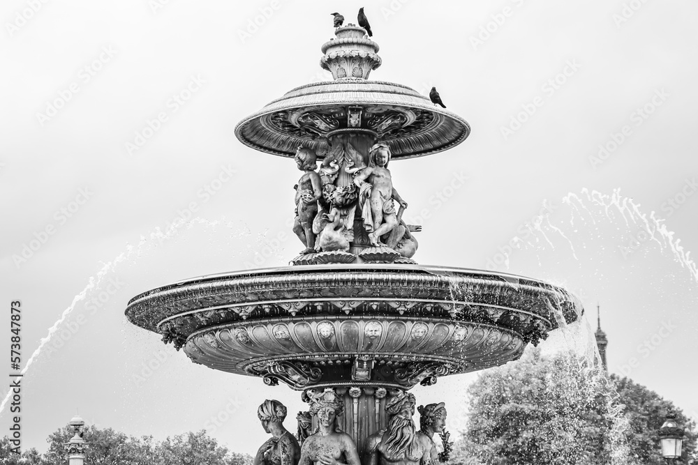 Fountain on the Place de la Concorde square in Paris, France in black and white