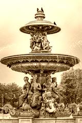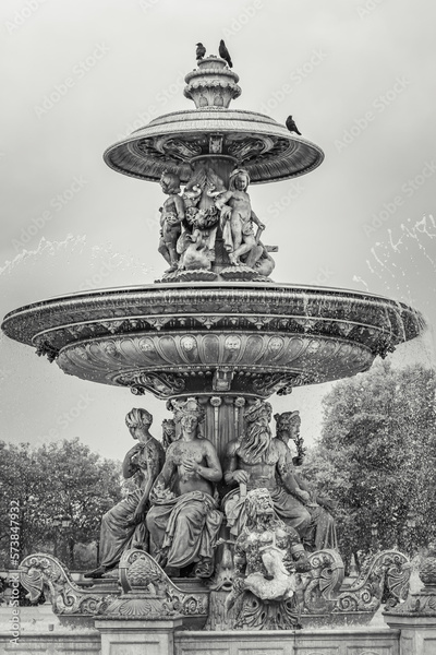 Fountain on the Place de la Concorde square in Paris, France in black and white