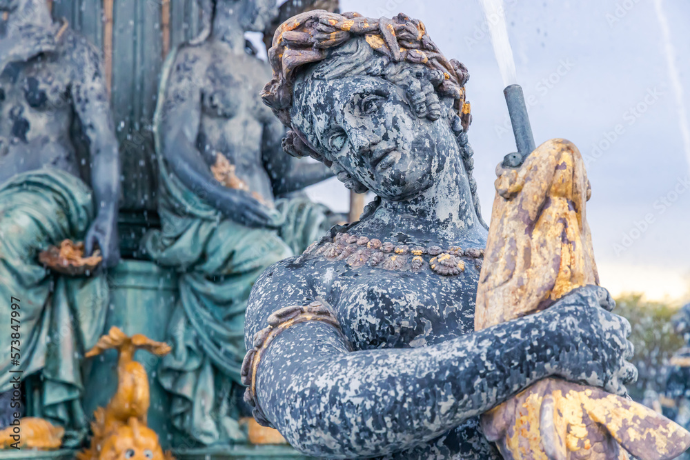 Close up on a naiad of a water fountain on the Place de la Concorde square in Paris, France