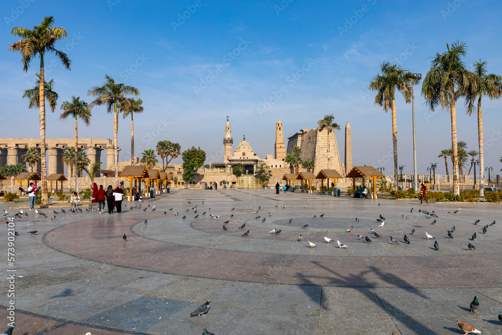 The square in front of the Luxor Temple near the minaret of the Ahmed Negm Mosque. Luxor, Egypt.