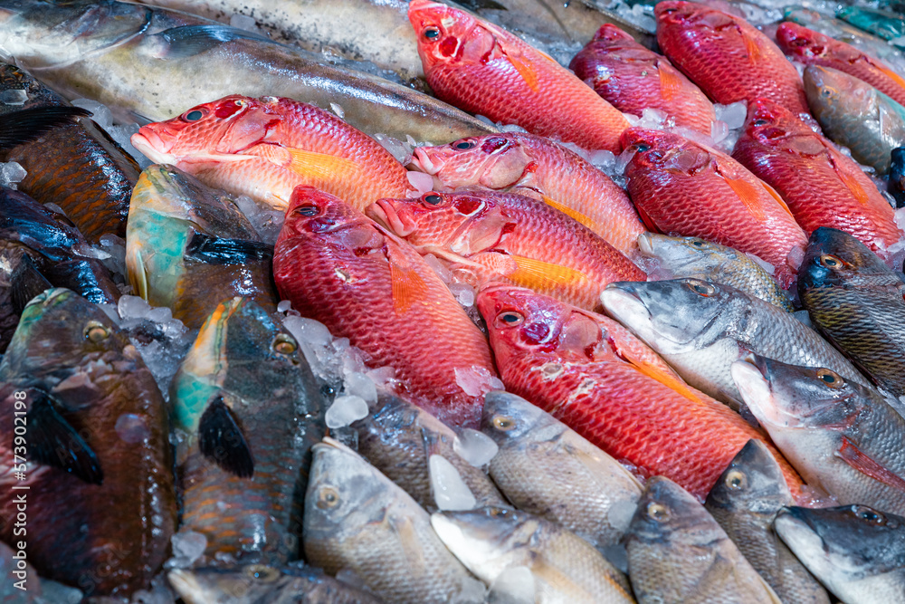 Fresh seafood and fishes at the fish market in Hurghada, Egypt