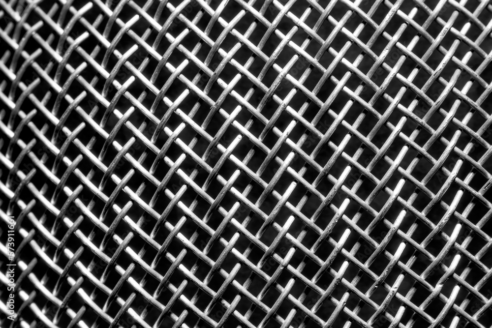 Monochrome texture of a shiny metal colander or grate. Abstract background.