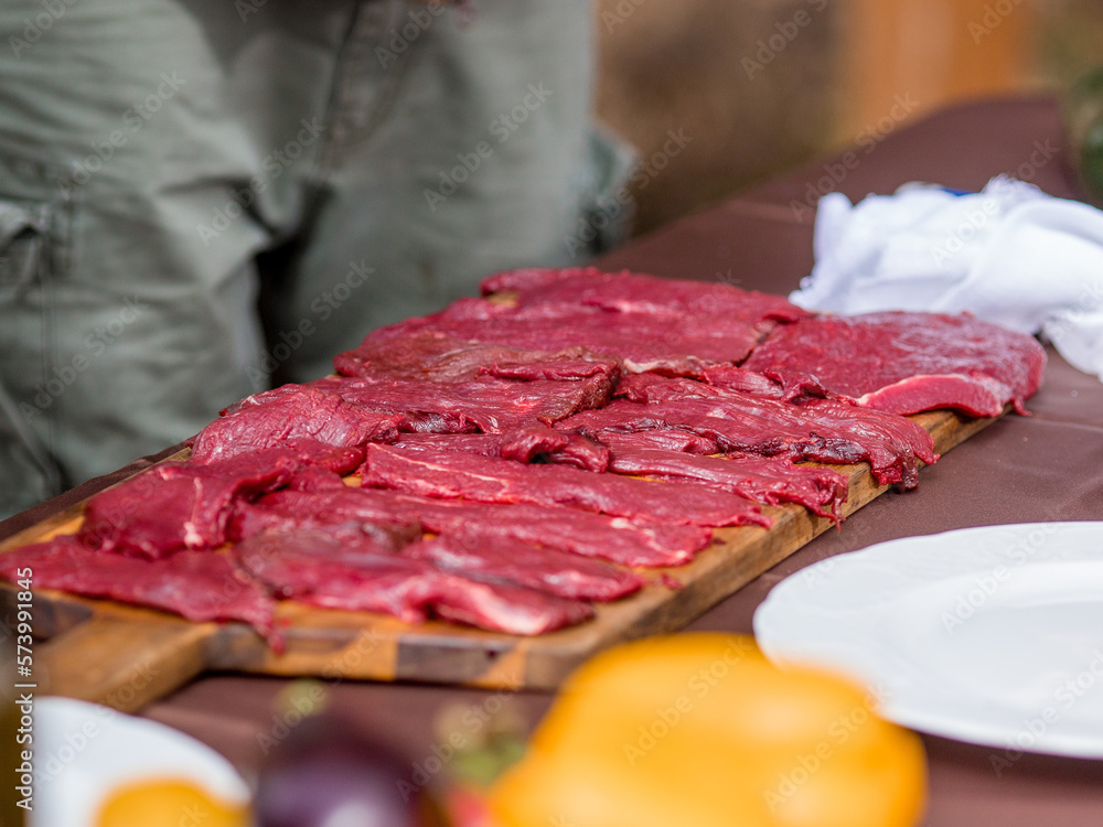 Fleisch schneiden und marinieren vor dem Grillen