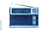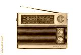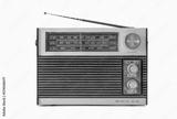 Authentic 70s radio receiver. Front view. Isolated on white background. Traces of time and scuffs on the body
