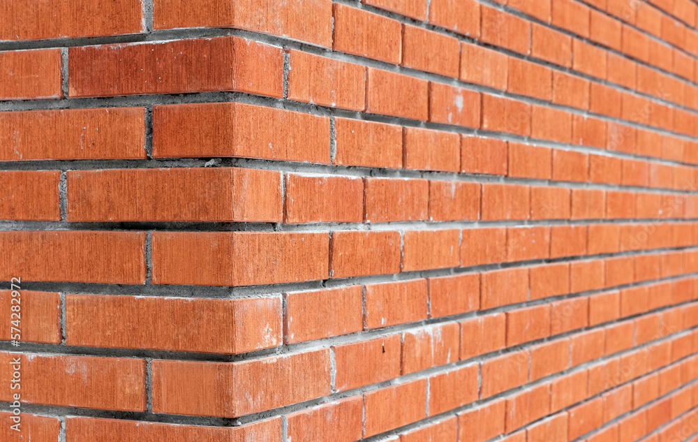 Corner of red brick wall. Abstract background photo