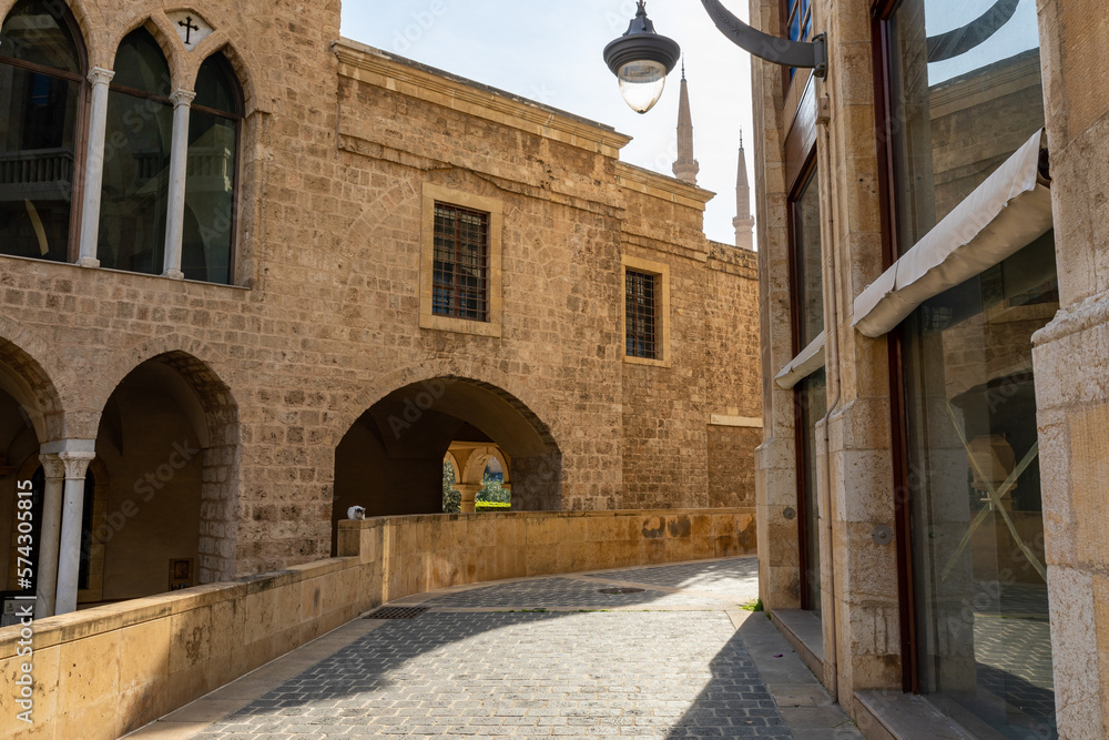 View of Nijmeh Square in Beirut. Traditional architecture in the old town of Beirut. Lebanon.