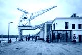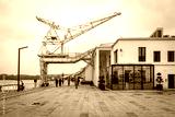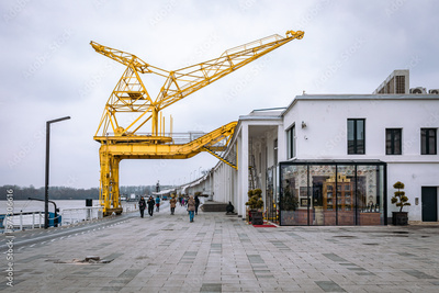 Big yellow construction crane in Belgrade's Beton Hala (Concrete Hall) Serbia.