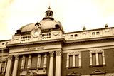 The Republic Square (Trg Republike in Serbian) with old Baroque style buildings, the statue of Prince Michael and the National Museum.