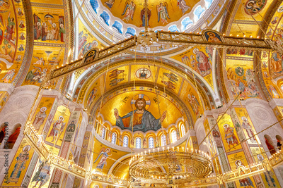 Magnificent Orthodox Mosaic Icon in the Temple of Saint Sava, Belgrade Serbia. Balkans.