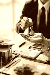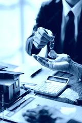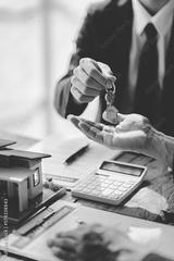 real estate agent Delivering keys and model homes to customers and home insurance contracts; home mortgage loan concepts