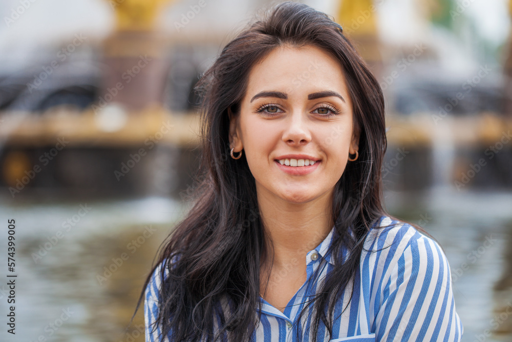 Young beautiful brunette girl in summer street