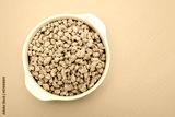 dry uncooked soya in white small bowl