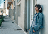 relaxed teenager with headphones on the street