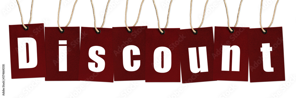 Discount Word on red tags Isolated on White Background