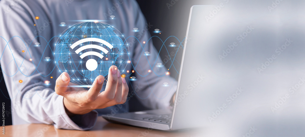 Man using laptop to connect internet, business communication social network concept