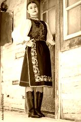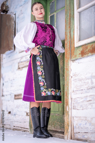 Young beautiful slovak woman in traditional costume. Slovak folklore