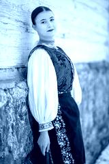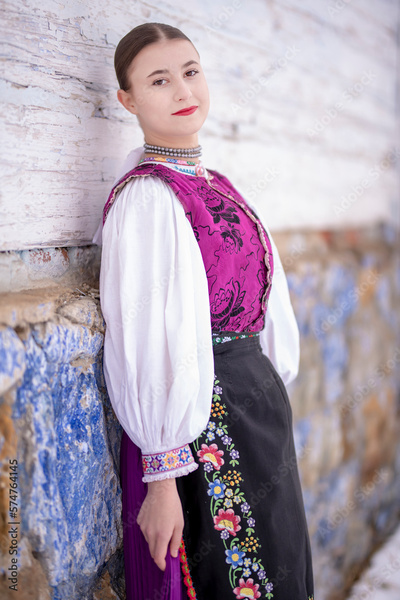 Young beautiful slovak woman in traditional costume. Slovak folklore