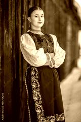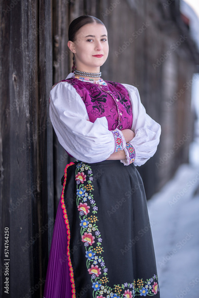 Young beautiful slovak woman in traditional costume. Slovak folklore