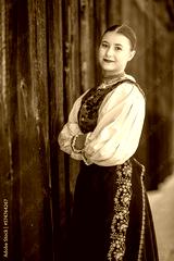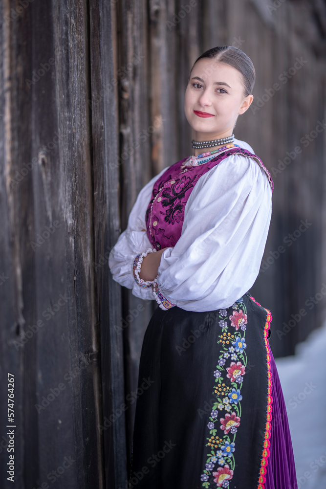 Young beautiful slovak woman in traditional costume. Slovak folklore