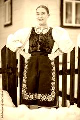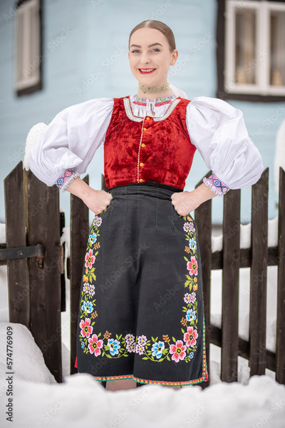 Young beautiful slovak woman in traditional costume. Slovak folklore