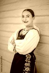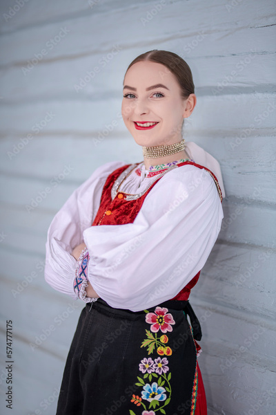 Young beautiful slovak woman in traditional costume. Slovak folklore