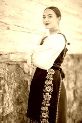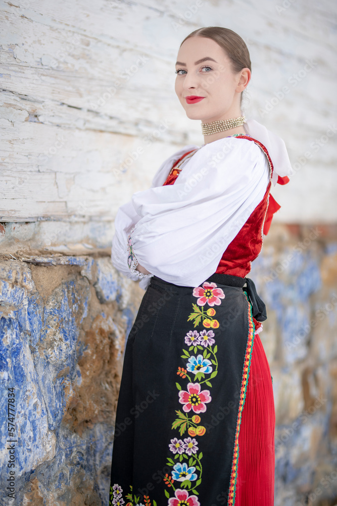 Young beautiful slovak woman in traditional costume. Slovak folklore