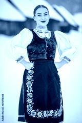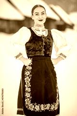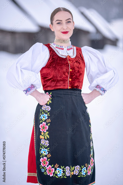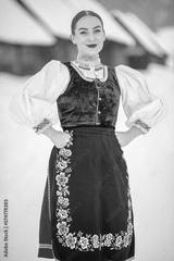 Young beautiful slovak woman in traditional costume. Slovak folklore