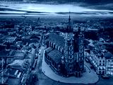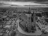 Rynek Główny w Krakowie z lotu drona o wschodzie słońca