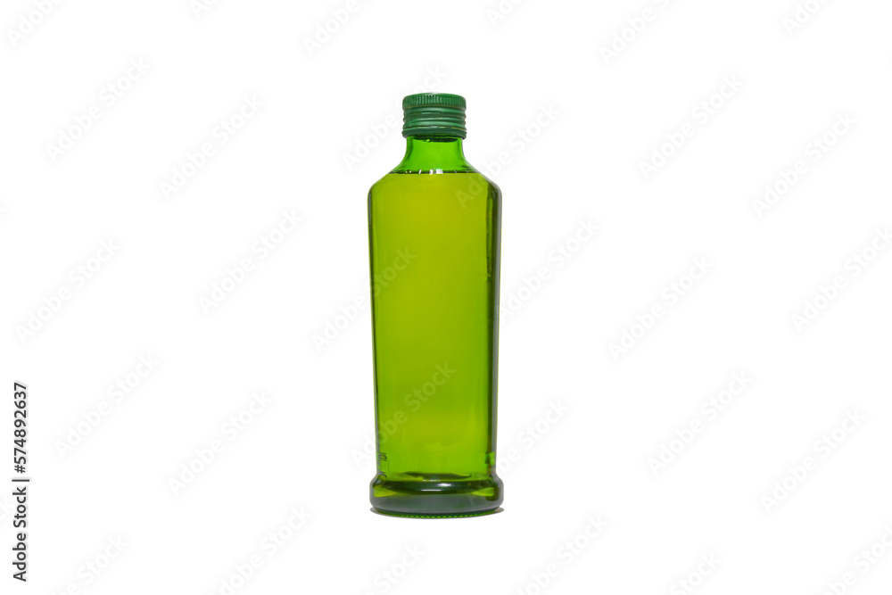 Extra virgin olive oil in a clear green glass bottle. (PNG)