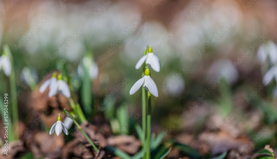 Snowdrops flower in spring forest