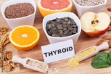 Products and ingredients as source healthy vitamins and minerals. Beneficial eating for thyroid gland