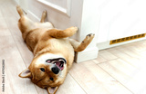 the dog is back on his back to the top with his paws