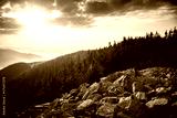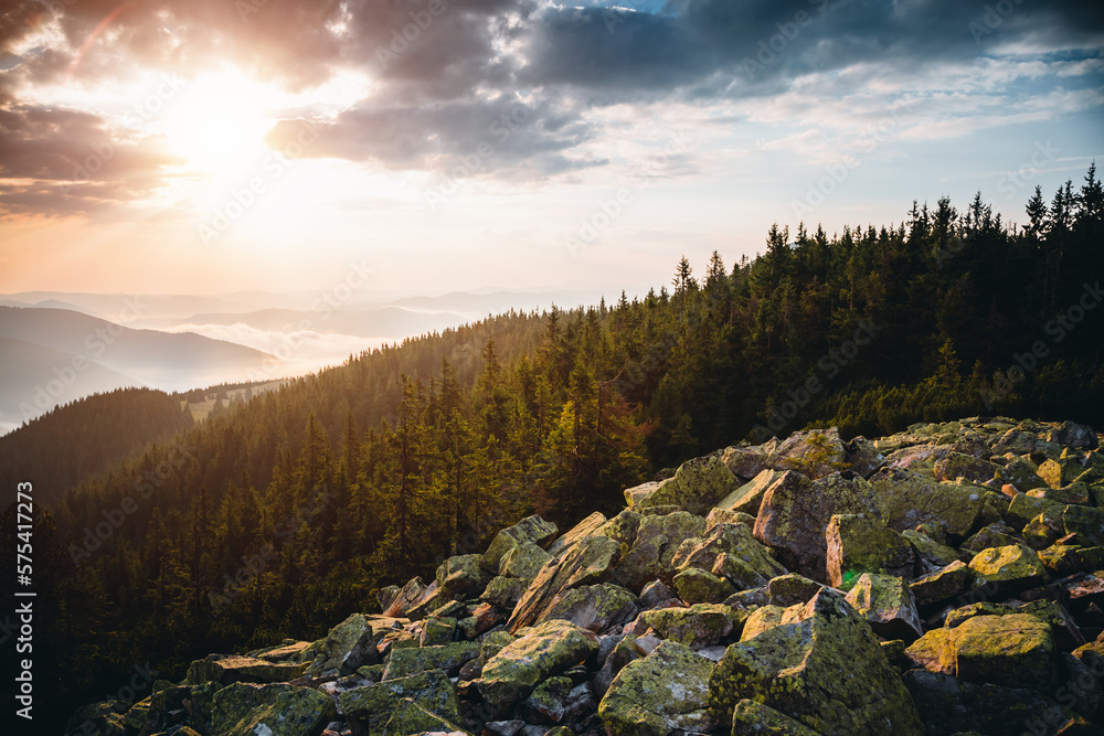 A peaceful view of distant mountain ranges in morning light. Carpathian mountains, Ukraine.
