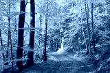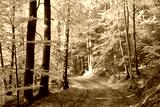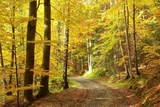 Pathway through the woods on a sunny autumn morning
