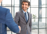 Business people shaking hands, finishing up a meeting.