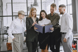 Colleagues hold a meeting in the office.