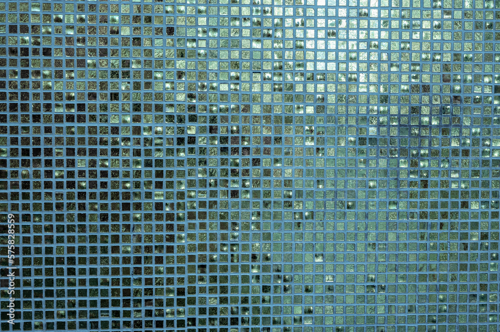 Small blue tile texture. Small cyan tiles arranged to fit it into background. Light blue tiled glasses mosaic background