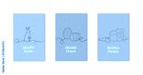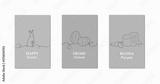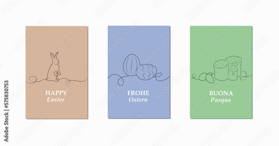 Easter Set of greeting cards, holiday covers, posters, flyers design in one line style with black egg,easter cake,easter rabbit and white inscription. Minimal design for social media, sale