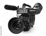 Professional digital video camera, isolated on white background