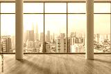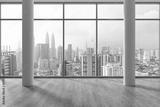Downtown Kuala Lumpur City Skyline Buildings from High Rise Window. Beautiful Expensive Real Estate overlooking. Empty room Interior Skyscrapers View Malaysia. Day time. 3d rendering.