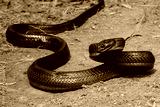 Exotic black snake ready to attack, mangrove snakes black boiga, cat snake, boiga dendrophila, animal closeup