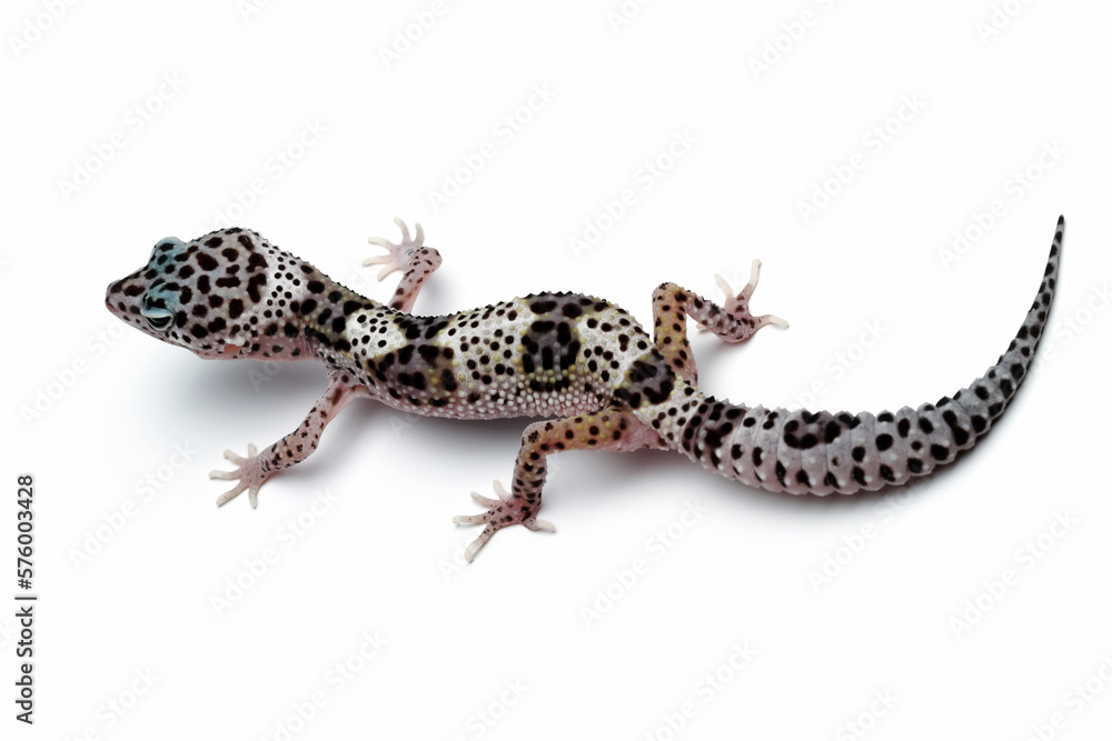 Fat-tailed geckos isolated on white background, leopard gecko lizard, eublepharis macularius