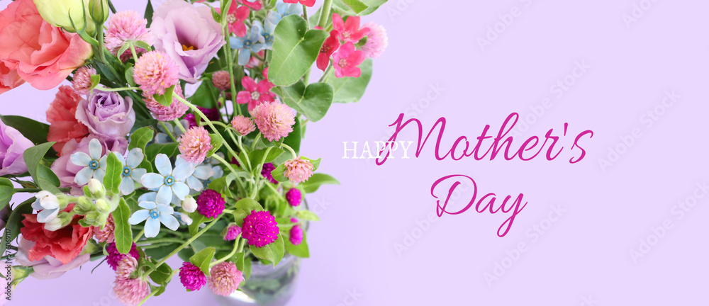mother's day concept with pink and purple flowers over pastel background