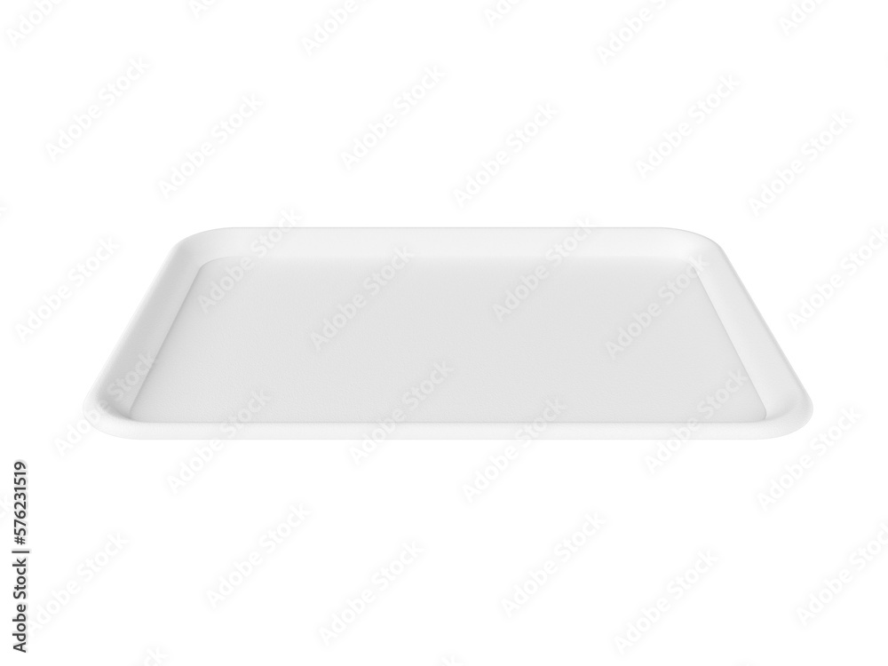 Empty white plastic tray. Isolated. Transparent background. 3d illustration.