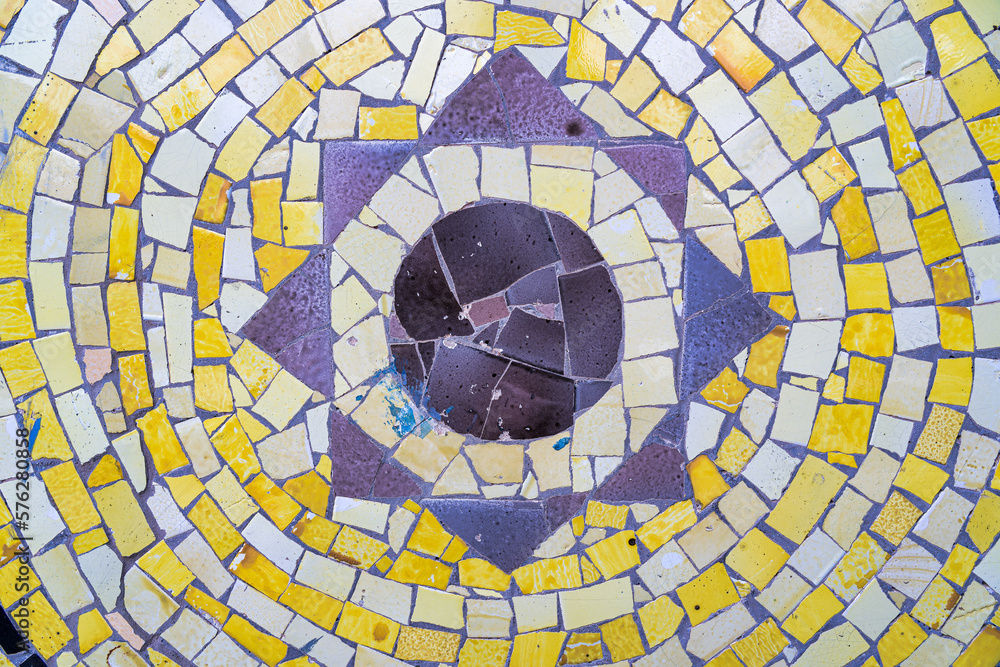 Close-up view of beautiful colorful decorative mosaic tiles. Abstract background.