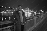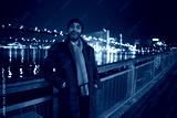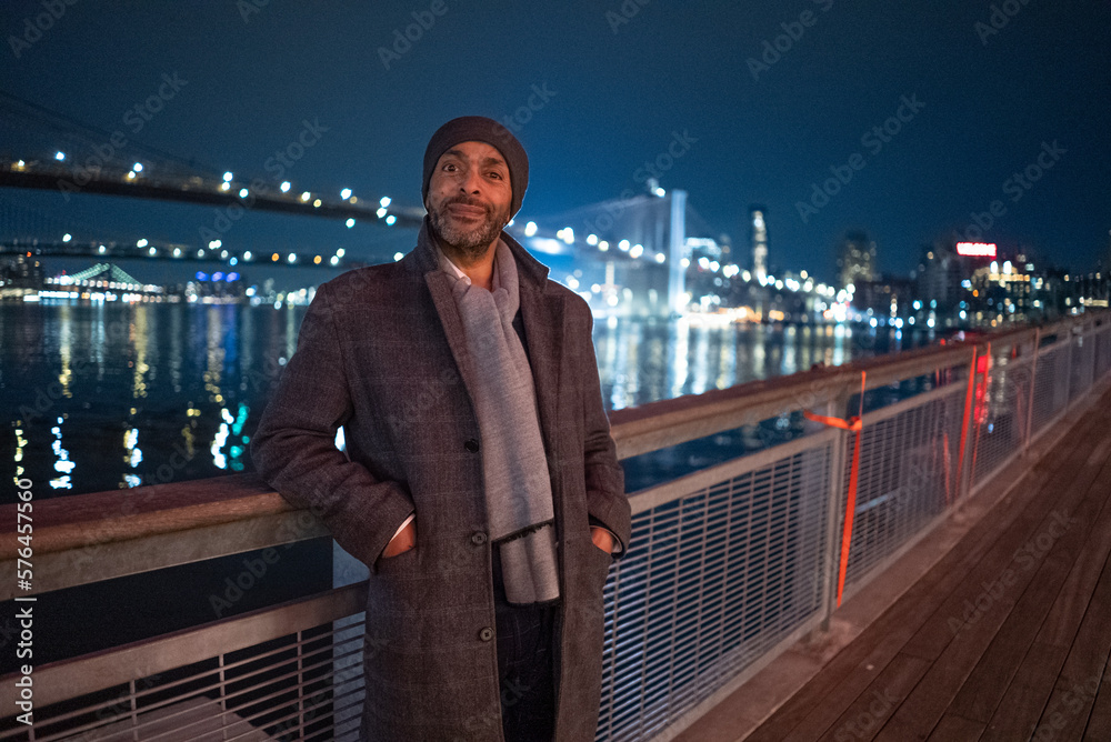 Afro American Man at Brooklyn Bridge by night - street photoraphy