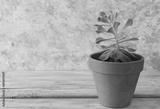 Succulent: Echeveria Hybrid Persia, in a clay pot, on white background. Close up.