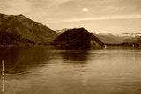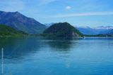 Landscape view of the Wolfgangsee Lake in the Salzkammergut region of Austria near Salzburg