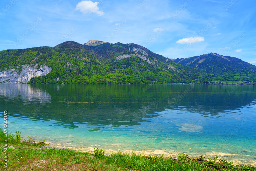 Landscape view of the Wolfgangsee Lake in the Salzkammergut region of Austria near Salzburg